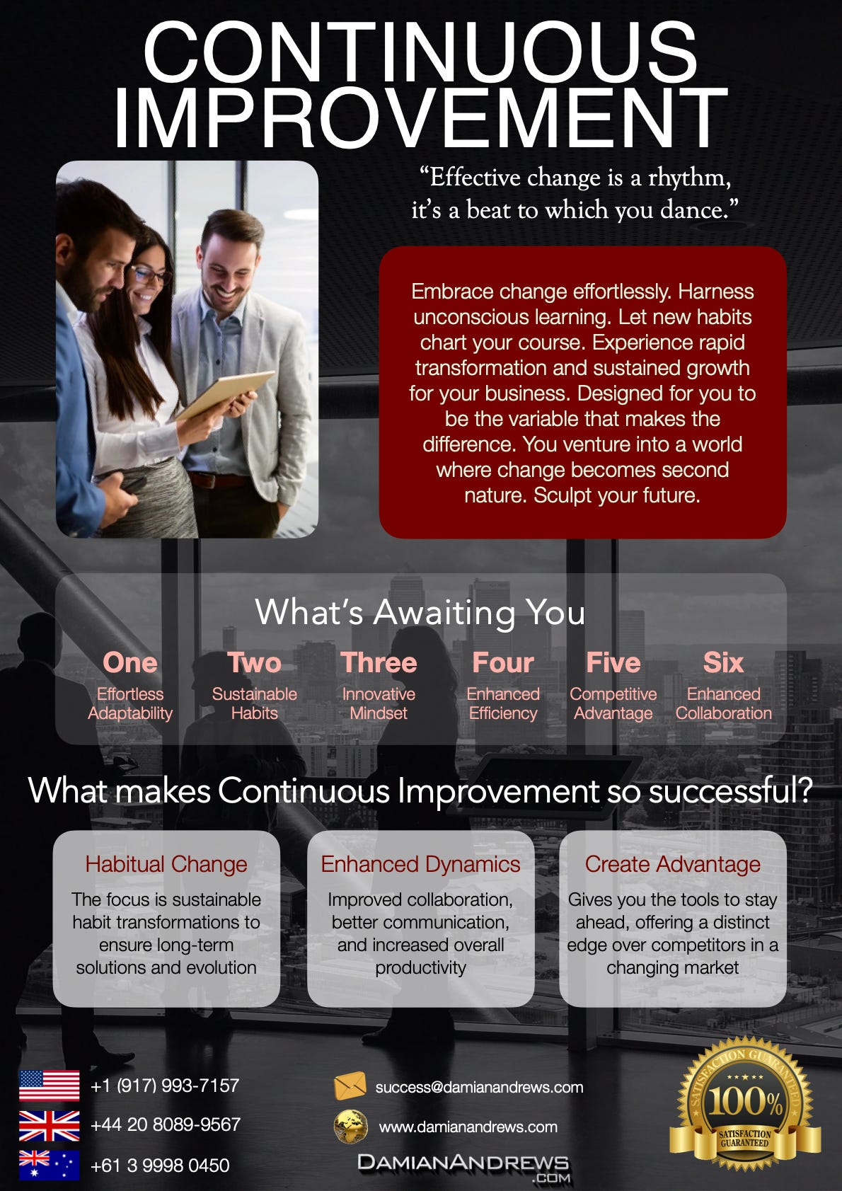 The DamianAndrews.com Continuous Improvement programme is part of the Exceptional Effort package. But it can operate as a stand-alone programme as well.